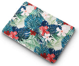 KECC Macbook Case with Cut Out Logo + Keyboard Cover Package | Floral Collection - Palm Leaves Red Flower